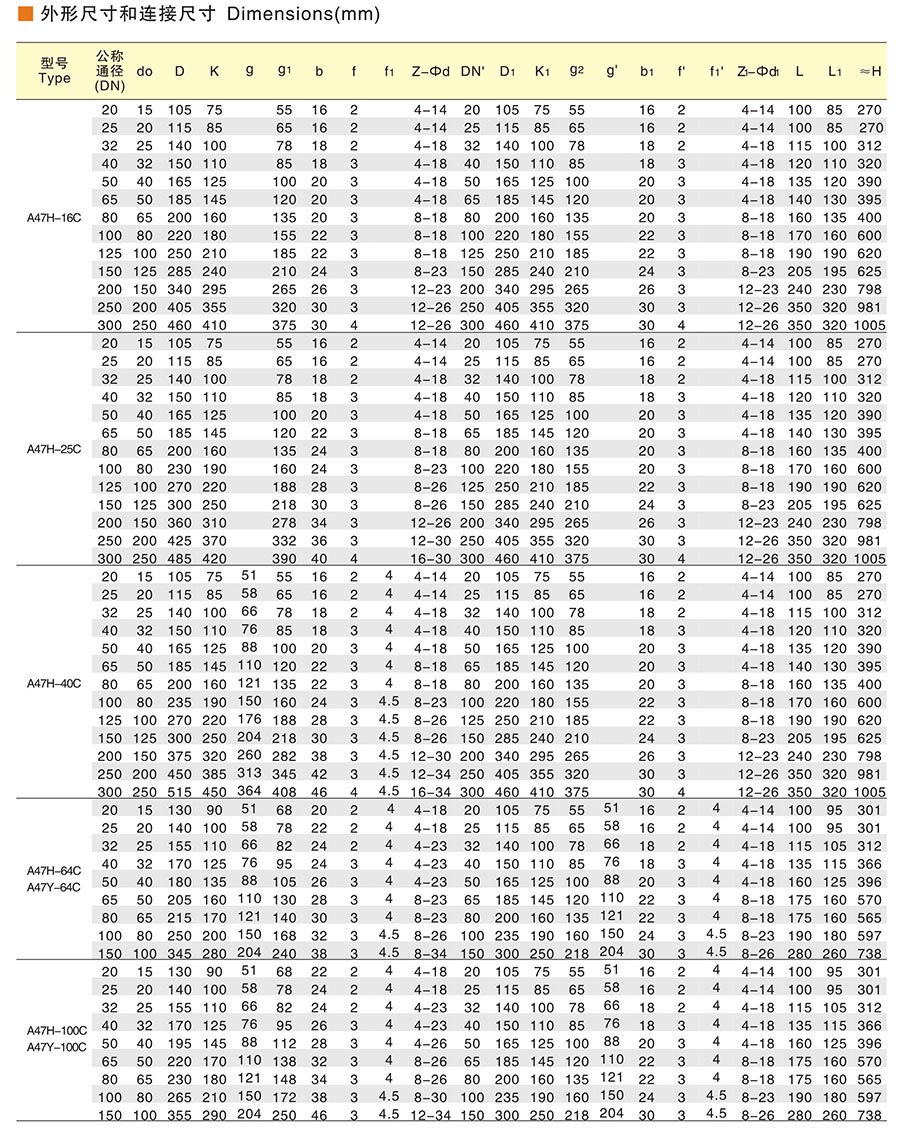 公稱通徑:DN20-300mm