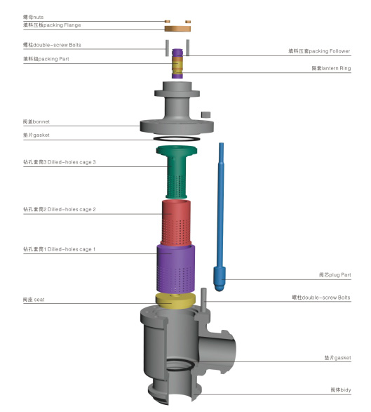 不平衡式多級降壓調(diào)節(jié)閥結(jié)構(gòu)圖(Unbalanced multistage step-down regulator structure diagram)