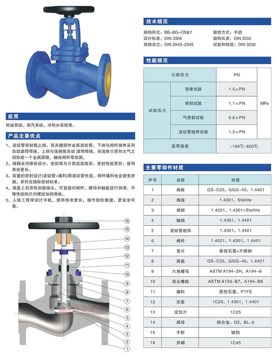 國標波紋管截止閥參數(shù) (Valve Parameters)