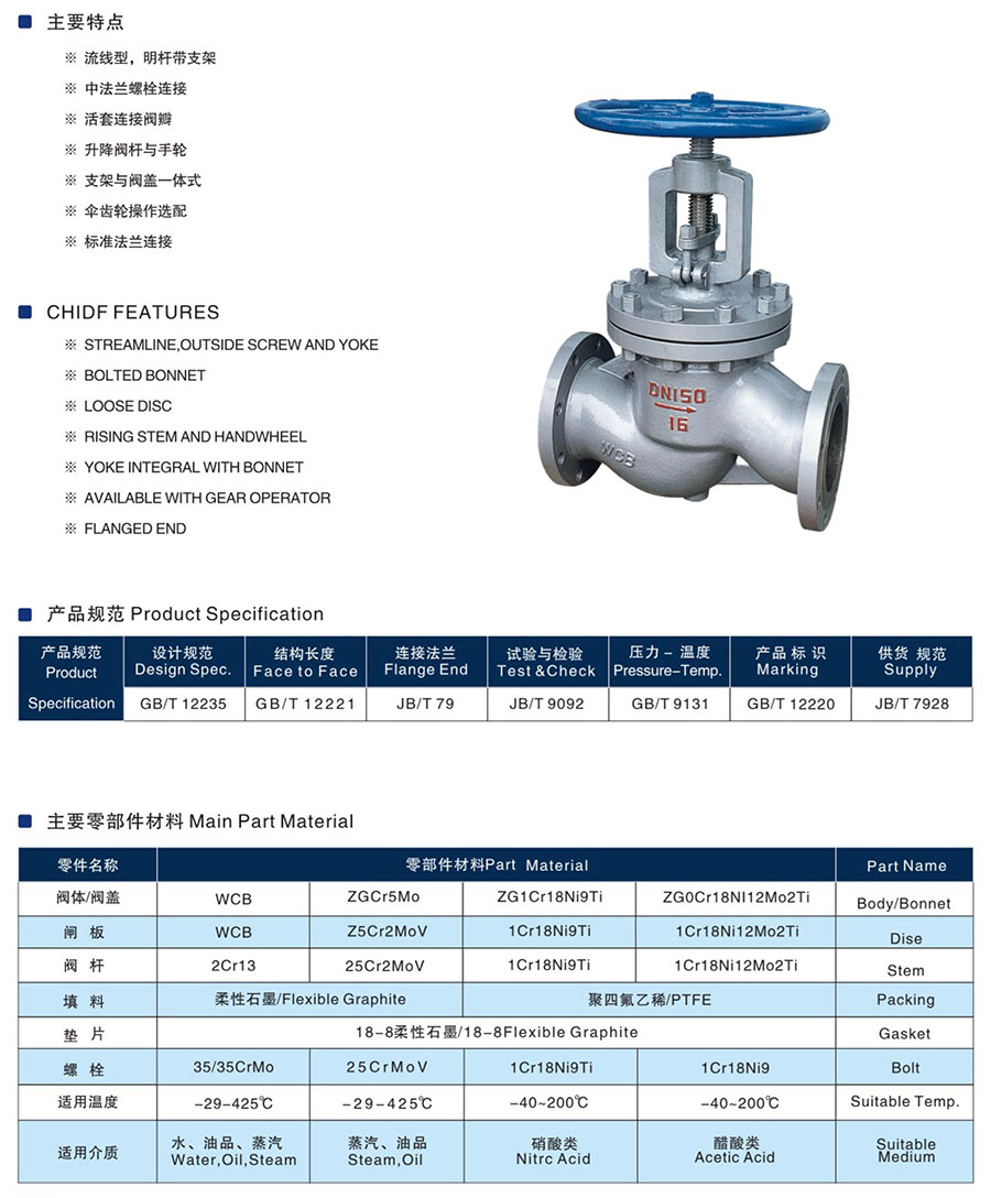 CHJ941H/CHJ941F防爆型電動(dòng)截止閥是有法蘭截止閥和多回轉(zhuǎn)電動(dòng)執(zhí)行器組成,適用于公稱壓力PN1.6~16.0Mpa,工作溫度-29~550℃的石油、化工、制藥、化肥、電力行業(yè)等各種工況的管道上,切斷或接通介質(zhì)。適用介質(zhì)為:水、油品、蒸汽、酸性介質(zhì)等??筛鶕?jù)現(xiàn)場(chǎng)工況要求,電動(dòng)執(zhí)行器可選配基本戶外型、普通一體化型、有開關(guān)量控制方式、調(diào)節(jié)量控制方式2種。在易燃易爆的場(chǎng)合安裝還可以選用防爆型多回轉(zhuǎn)閥門電動(dòng)裝置。默認(rèn)電壓三相AC380V,其他電壓訂貨時(shí)需提出。。