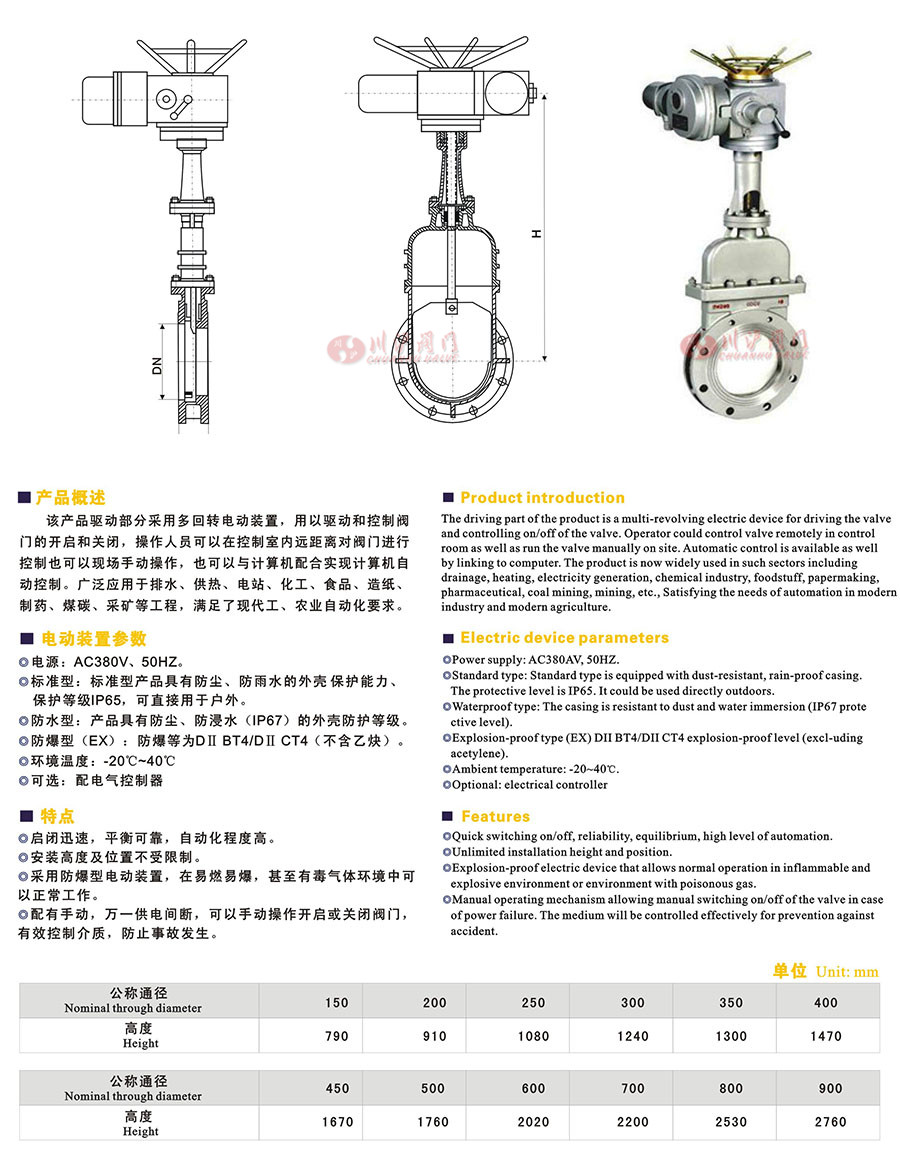 CHPMZ973X/CHPMZ973H電動暗桿式刀閘閥 / CHPMZ973X/CHPMZ973H Electric dark rod type knife gate valve