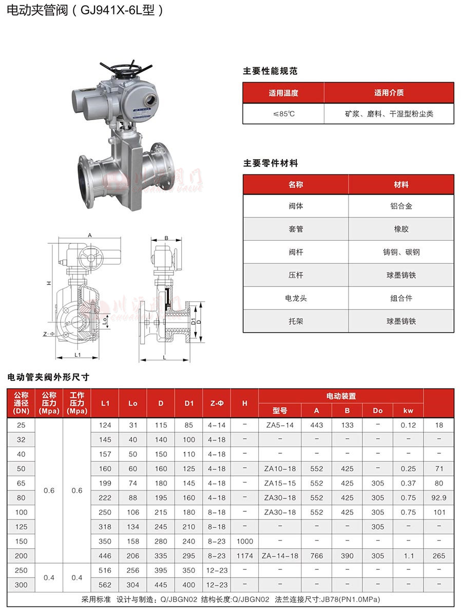 電動管夾閥是一種具有獨特結構形式的新型閥門,因其卓越的耐磨防腐性能而倍受青睞,適應于低壓管道的顆粒漿體或化學介質(zhì)的輸送控制系統(tǒng)。電動管夾閥開啟方便靈活,密封性能好,杜絕了跑冒滴漏等現(xiàn)象的發(fā)生,膠管可定期更換,而閥體能長期使用,節(jié)省費用。膠管閥可以替代閘閥、截止閥和調(diào)節(jié)閥,提高使用壽命5-10倍。GJ941X-6L電動膠管閥由多回轉(zhuǎn)電動執(zhí)行機構(DZW系列)與管夾閥組成,安裝簡易方便,耐磨、耐腐蝕。