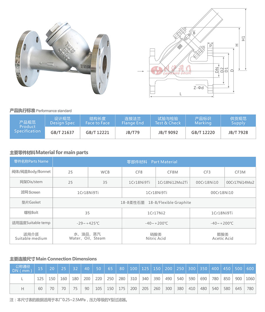 GL41W/GL41H不銹鋼Y型過濾器由殼體、排污蓋、濾網(wǎng)等組成,是輸送介質(zhì)的管道系統(tǒng)所不可缺少的一種裝置,其作用是清除介質(zhì)中的機械雜質(zhì),以保護設備管道上的配件免受磨損和堵塞。內(nèi)部件全部采用不銹鋼,堅固耐用。該過濾器體積小、濾眼細、阻力小、效率高、安裝檢修方便、成本低、維修方便。