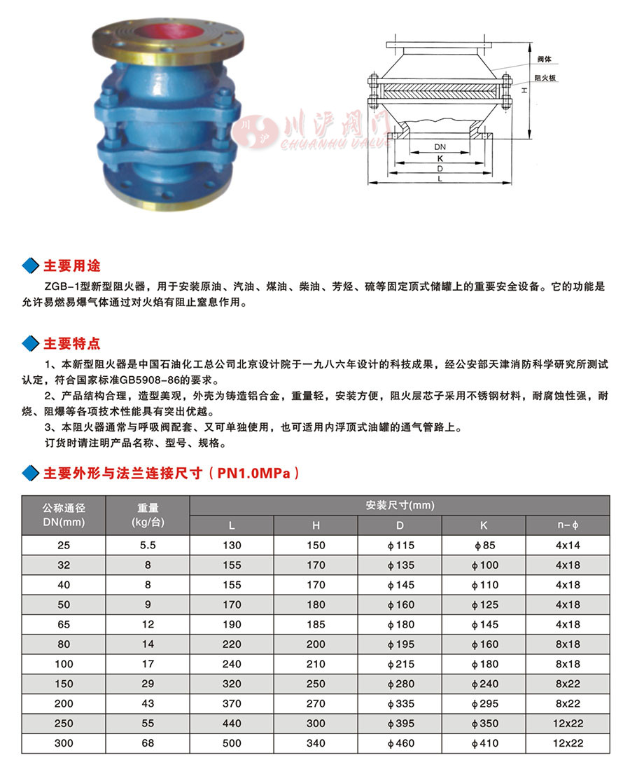 ZGB波紋管儲罐阻火器系用于安裝原油、汽油、煤油、柴油、芳烴、硫等固定頂式儲罐上的重要安全設(shè)備。它的功能是允許易燃易爆氣體通過對火焰有阻止窒息作用。