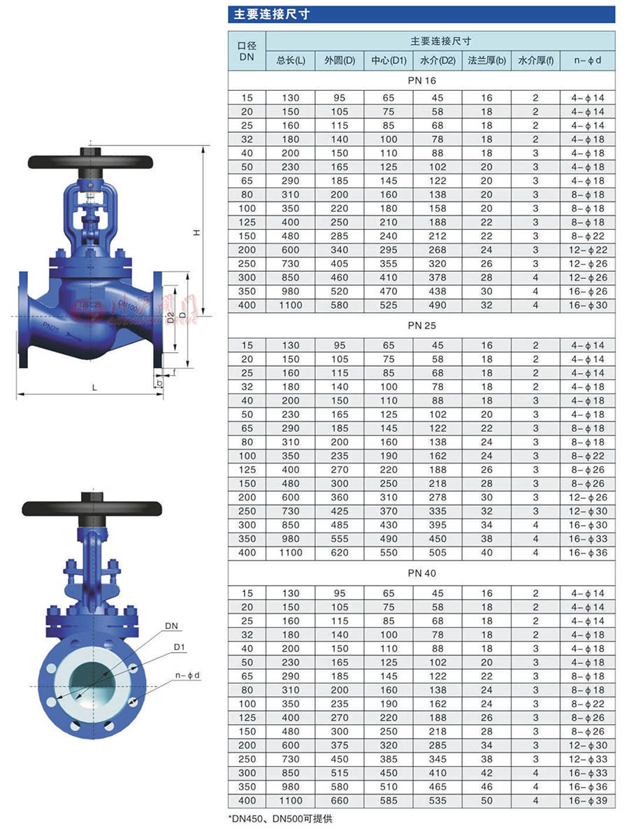 公稱通徑:DN15-500mm