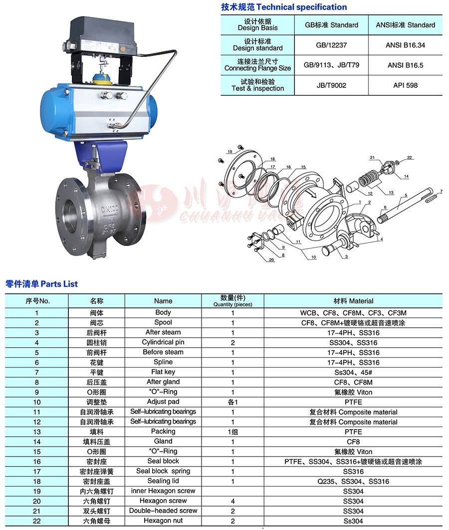 CHVQ640H氣動(dòng)法蘭式V型球閥 / Pneumatic flange type V ball valve
