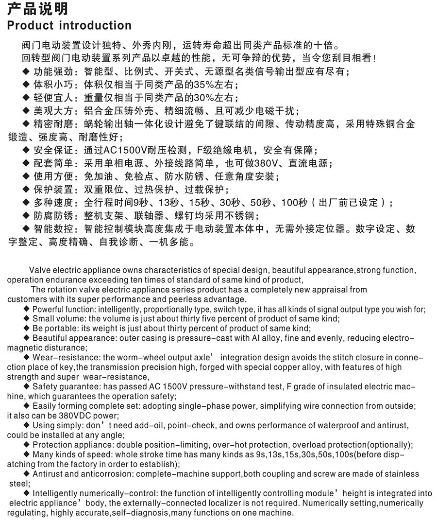 回轉(zhuǎn)型閥門電動(dòng)裝置系列產(chǎn)品以卓越的性能,無(wú)可爭(zhēng)辯的優(yōu)勢(shì),當(dāng)令您刮目相看!