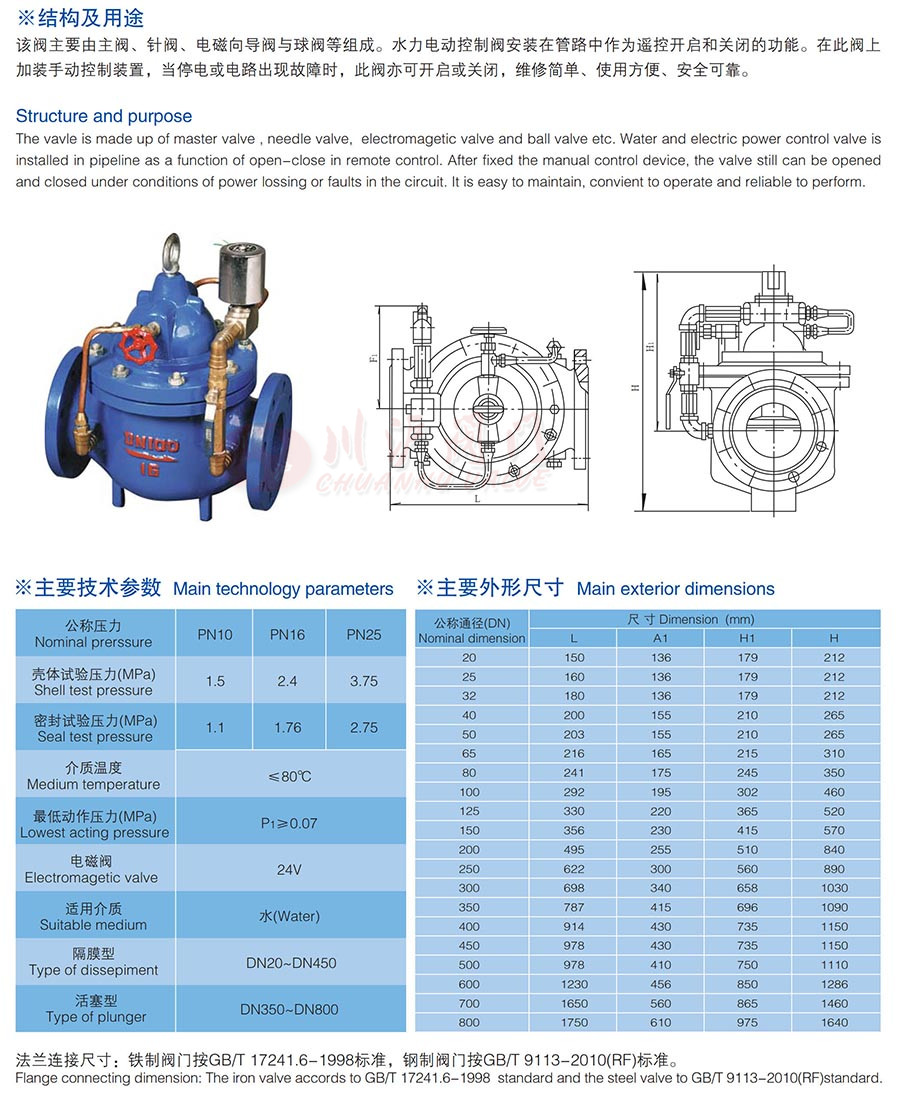 600X水力電動控制閥由主閥、針閥、電磁向?qū)чy與球閥等組成。水力電動控制閥安裝在管路中作為遙控開啟和關(guān)閉的功能。在此閥上加裝手動控制裝置,當(dāng)停電或電路出現(xiàn)故障時,此閥亦可開啟或關(guān)閉,維修簡單、使用方便、安全可靠。
