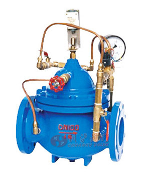 700X水泵控制閥主要由主閥、針閥、電磁向?qū)чy、單向閥、球閥、電器控制開關(guān)與壓力表等組成。水泵控制閥是能夠控制水泵的止回閥,當(dāng)水泵停止運(yùn)行前,由進(jìn)口壓力先關(guān)閉主閥的90%時(shí),使水泵自動(dòng)停止,剩下的10%由回水關(guān)閉,可完全防止水錘現(xiàn)象產(chǎn)生。適用于工礦企業(yè)、高層建筑中由水泵直接供水管網(wǎng)系統(tǒng)。