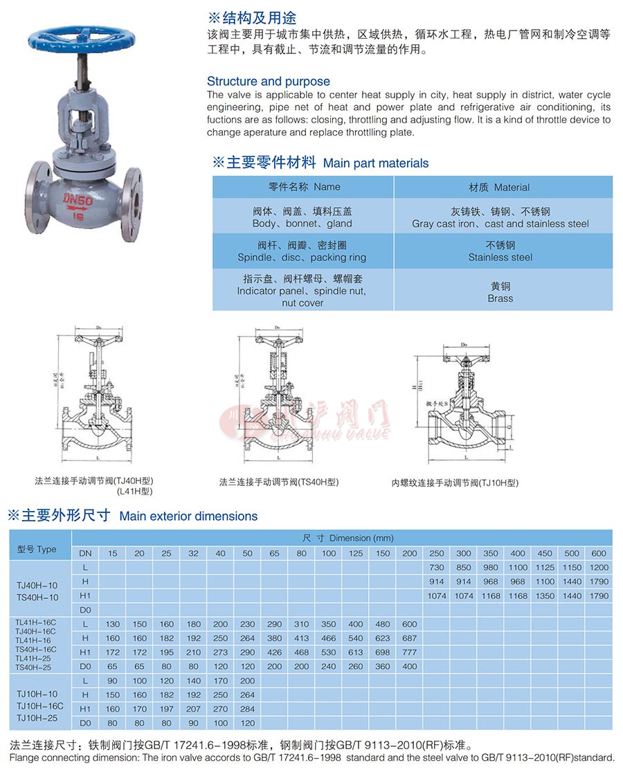T40H手動調節(jié)閥主要用于城市集中供熱,區(qū)域供熱,循環(huán)水工程,熱電廠管網(wǎng)和制冷空調等工程中,具有截止、節(jié)流和調節(jié)流量的作用。