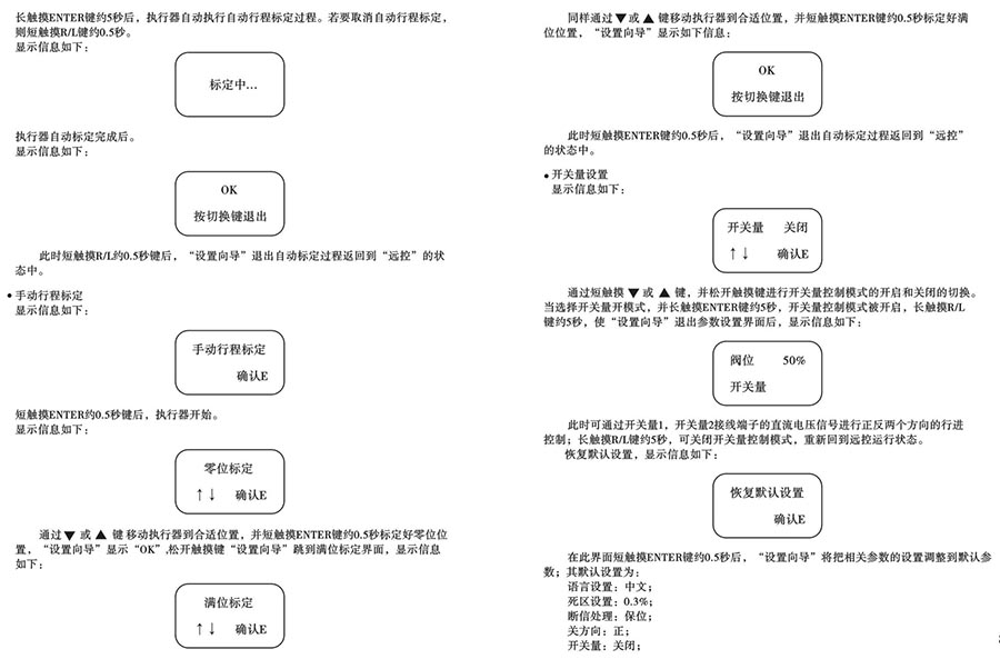 2SB6系列智能型電動執(zhí)行機構(gòu)適用于工業(yè)過程的閉環(huán)控制系統(tǒng),能可靠地對調(diào)節(jié)閥實行精確控制。主要應(yīng)用于電站,冶金,污水處理,石化等領(lǐng)域。該智能型電動執(zhí)行機構(gòu)結(jié)構(gòu)緊湊,重量輕,體積小。它采用直流無刷電機以及齒輪箱減速,具有高效率,噪音低。后還采用電動機里面的霍爾傳感器來檢測位置,具有控制精度高,壽命長,簡化了機械結(jié)構(gòu)。電氣控制部分采用模塊化設(shè)計,由驅(qū)動單元,控制單元,液晶顯示單元,非侵入式的觸摸按鍵單元組成,具有操作簡單,調(diào)試方便,接線方便。轉(zhuǎn)矩控制以及行程限位都通過電子電路來實現(xiàn),從而實現(xiàn)無需開蓋調(diào)試。