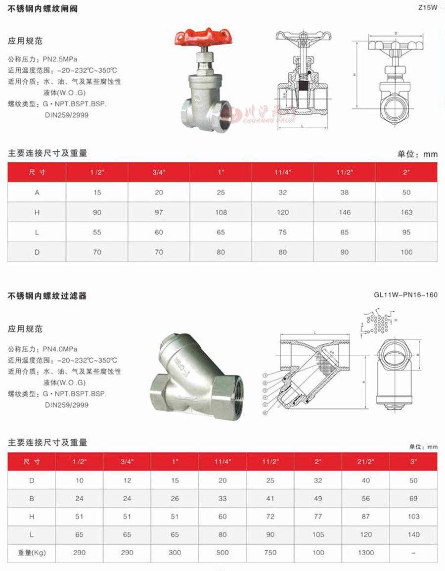 公稱通徑:DN15-50mm